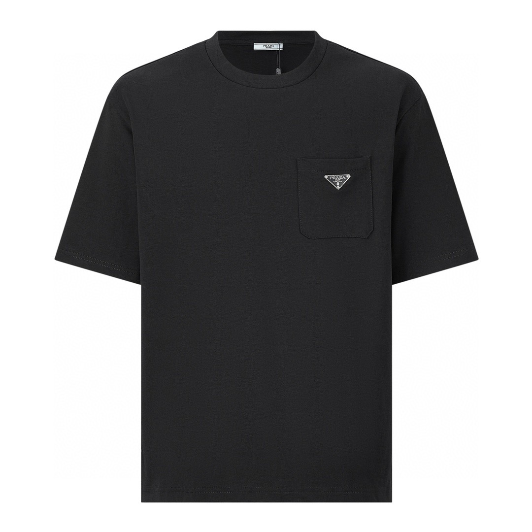 PRADA 普拉达 纯色徽标口袋 圆领 短袖 T恤 黑色