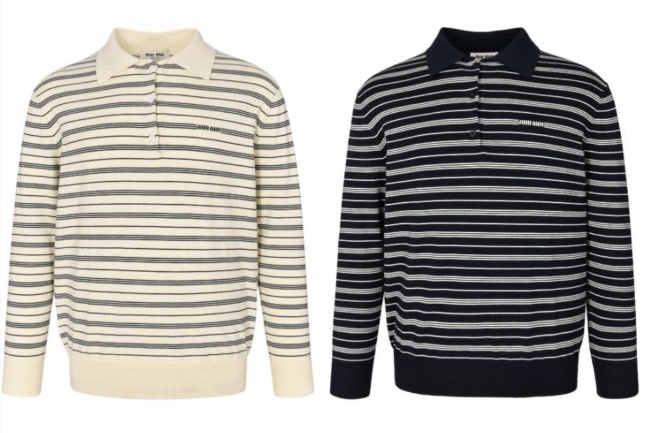 MIU MIU 缪缪 条纹Polo领针织衫 毛衣 长袖 米白色 黑蓝色 MML951-140V-F0304-S-OOO