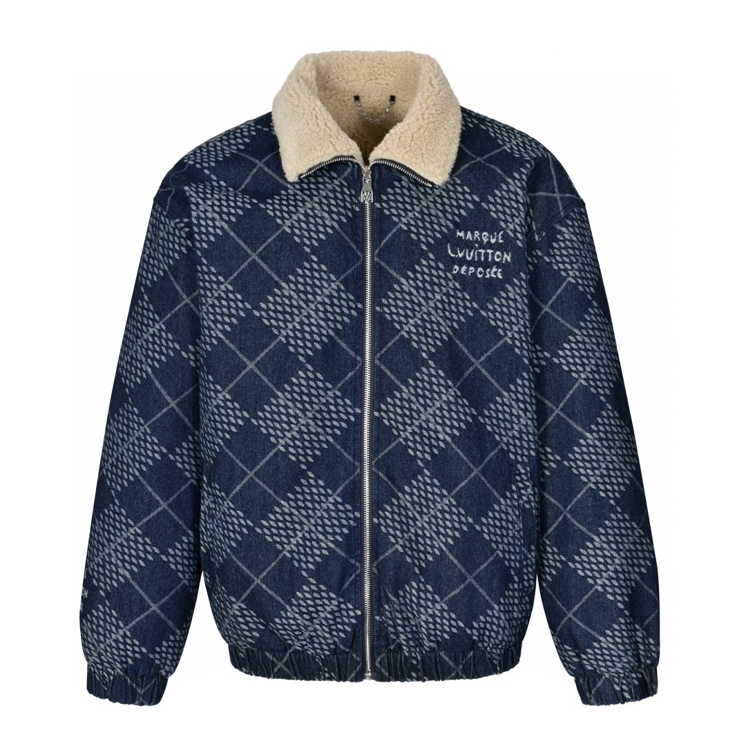 LOUIS VUITTON 路易威登 棋盘格羊羔毛拉链立领牛仔夹克 外套 长袖 蓝色 1AGINO
