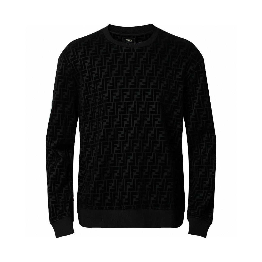 FENDI 芬迪 字母logo满印植绒卫衣 长袖 圆领 秋冬 黑色 FY1077AFRJF0ABB