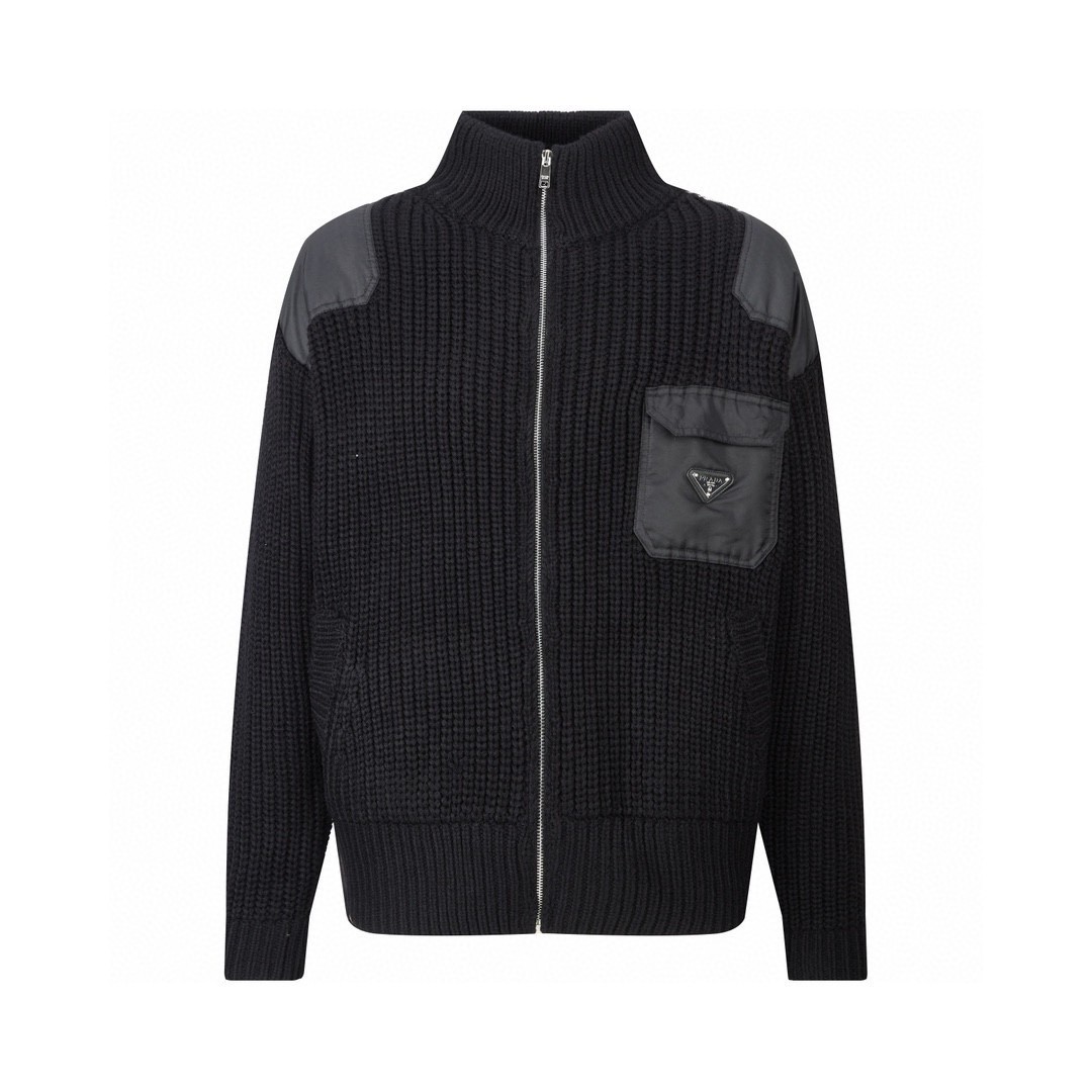 PRADA 普拉达 尼龙针织拼接拉链开衫 毛衣 夹克 外套 长袖 黑色 UMG335-145N-F0002-OOO