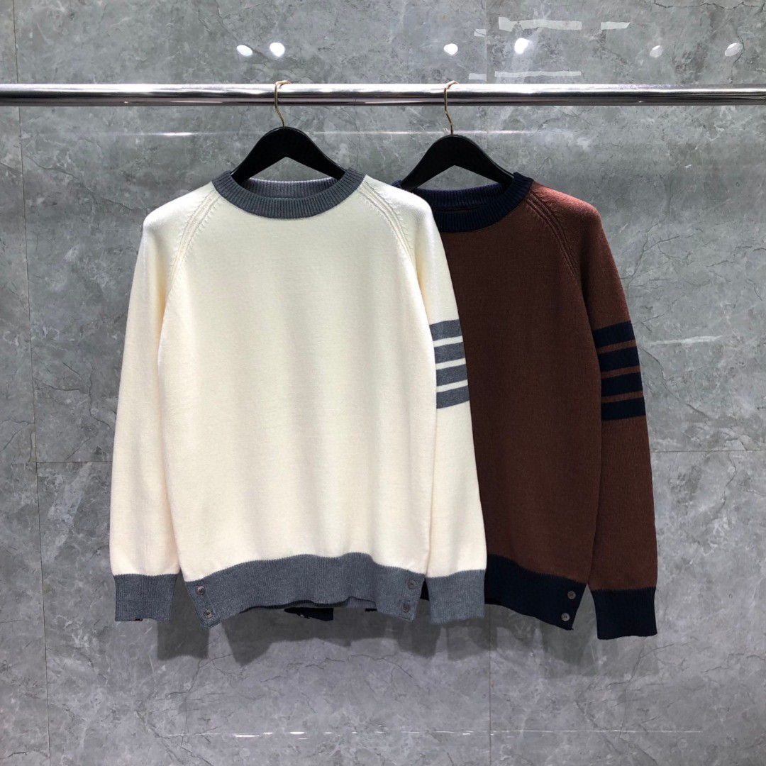 THOM BROWNE 经典四杠圆领毛衣 针织衫 长袖 驼色 白色