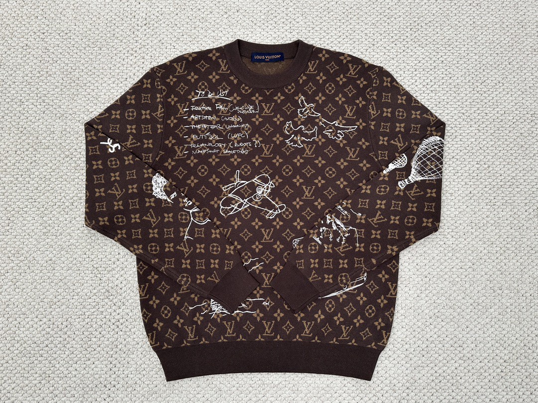 LOUIS VUITTON 路易威登 FW23 Logo字母涂鸦满印圆领休闲 针织衫 长袖 套头 男款 棕色 1ABXYW