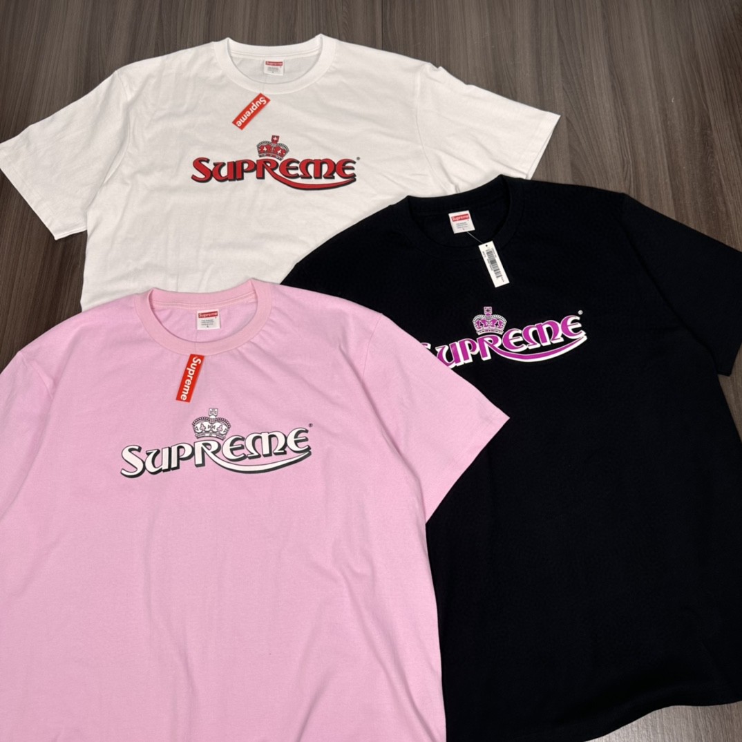 Supreme SS23 WEEK18 CROWN TEE 字母印花 圆领 短袖 T 恤 男女同款 粉色 白色 黑色 SUP-SS23-281