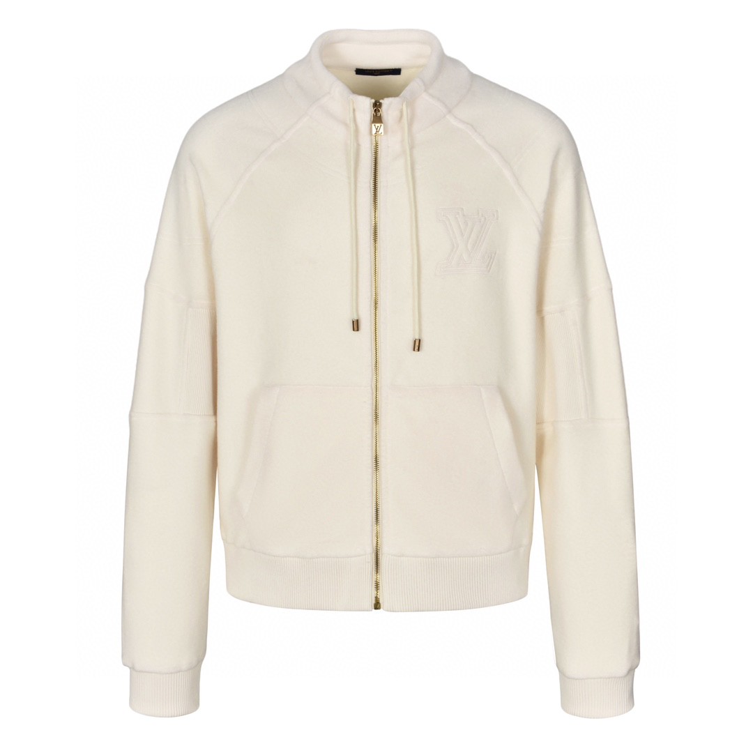 LOUIS VUITTON 路易威登 纯色字母logo徽标羊毛拉链夹克 外套 长袖 白色 1AGJXF