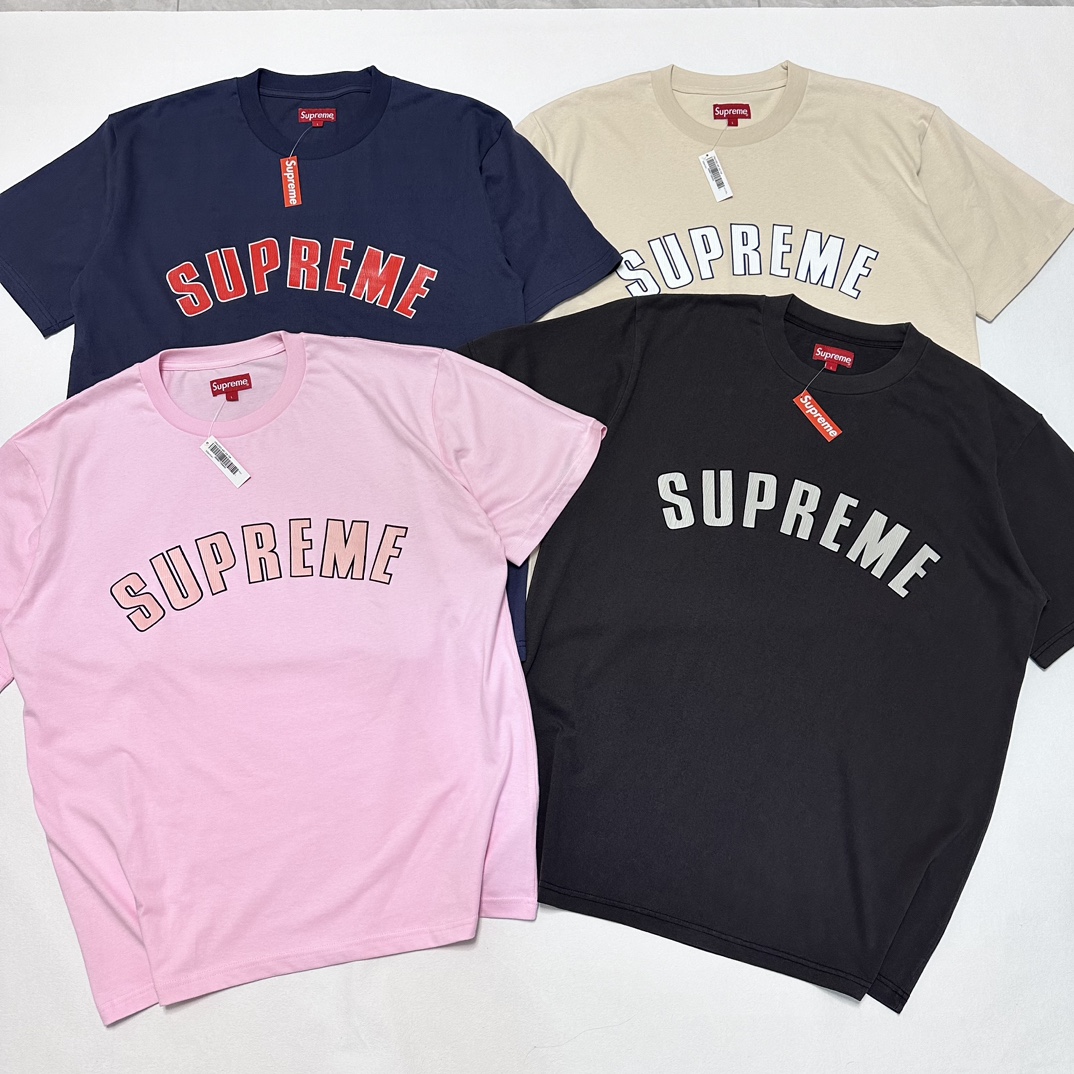 Supreme SS24 CRACKED ARC S/S TOP 字母 短袖 T恤 男女同款 黑色 粉色 藏蓝 杏色 SUP-SS24-055