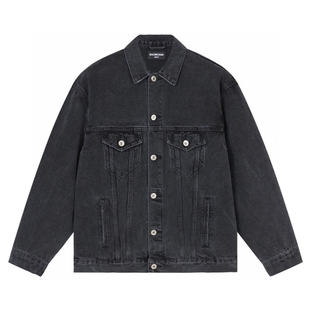 Balenciaga 巴黎世家 纯色落肩设计涂鸦夹克 牛仔外套 黑色 678354TIWA20114