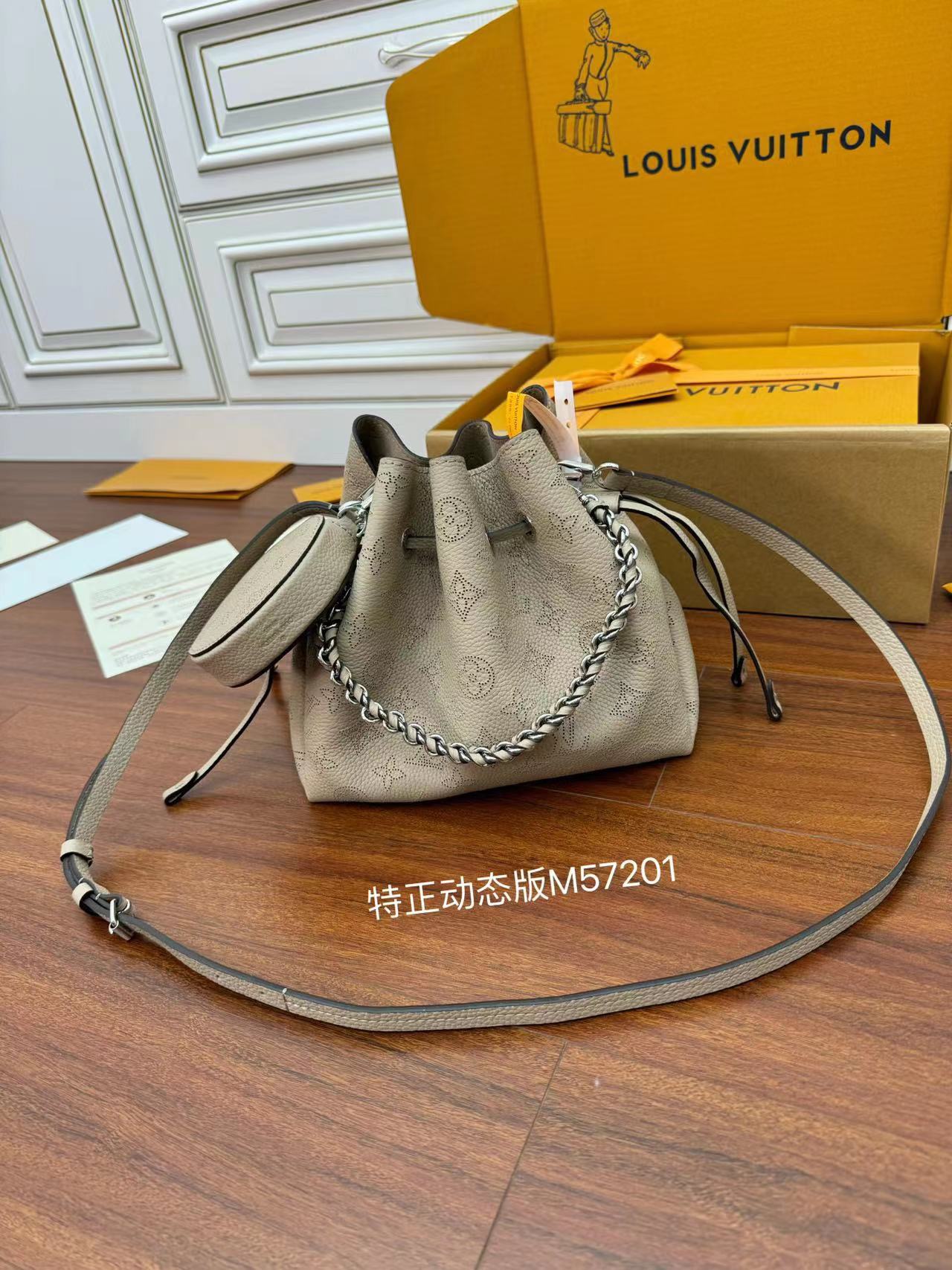 特级 LOUIS VUITTON 路易威登 Bella 可调节 可拆卸 翻盖 牛皮革 斜挎包 单肩包 双肩包 水桶 手提包 象牙色 M57201