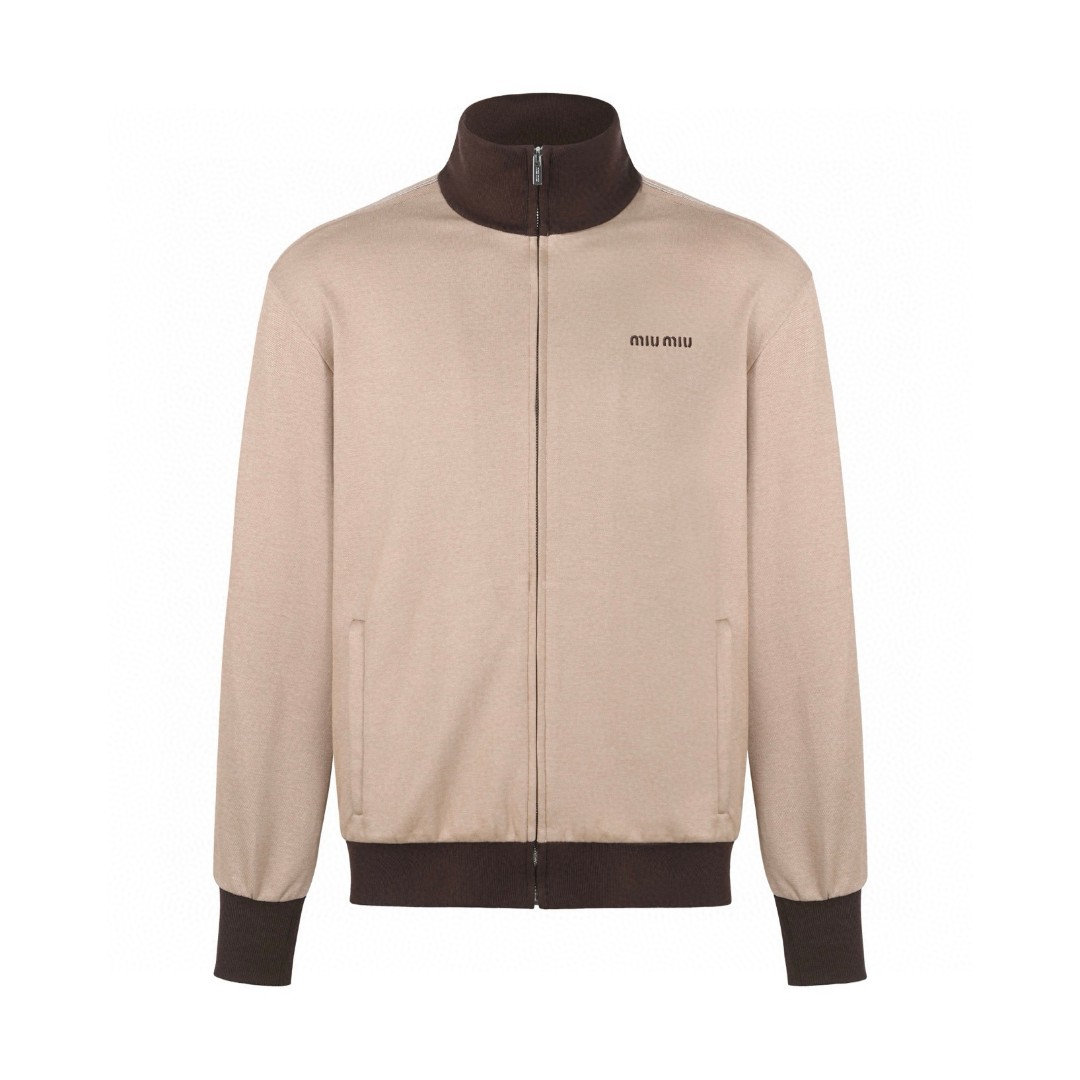 MIU MIU 缪缪 平纹针织拉链运动衫 外套 夹克 长袖 卡其色 B5 MJL980-17I5-F0770-S-OOO